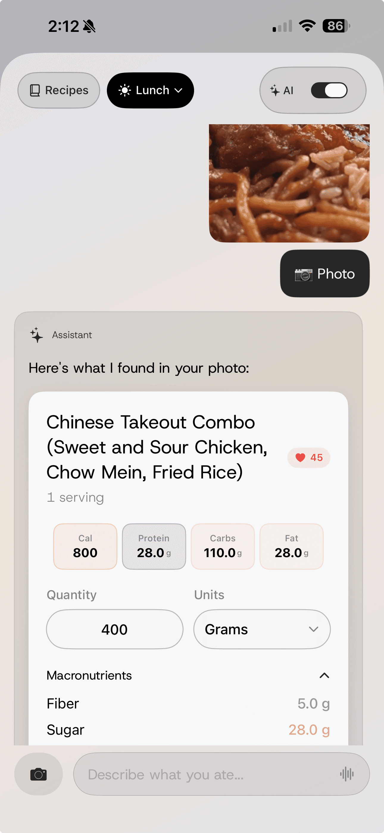 I don’t need to scroll through menus anymore. I just tell Bricks what I ate, and it knows exactly what I mean. So smooth.